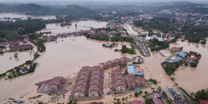 Pandangan dari udara keadaan banjir kilat yang melanda daerah Pokok Sena